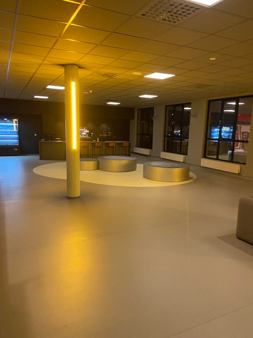 Akkurat nå jobbes det med fornying av resepsjonen og kaféen. Senteret er på hele 3 850 kvm, så resepsjonen og kaféen byr på en hel del arbeid i seg selv. Vi synes det blir veldig flott, og vi er trygge på at treningsglade haugalendinger vil sette pris på forandringene.
