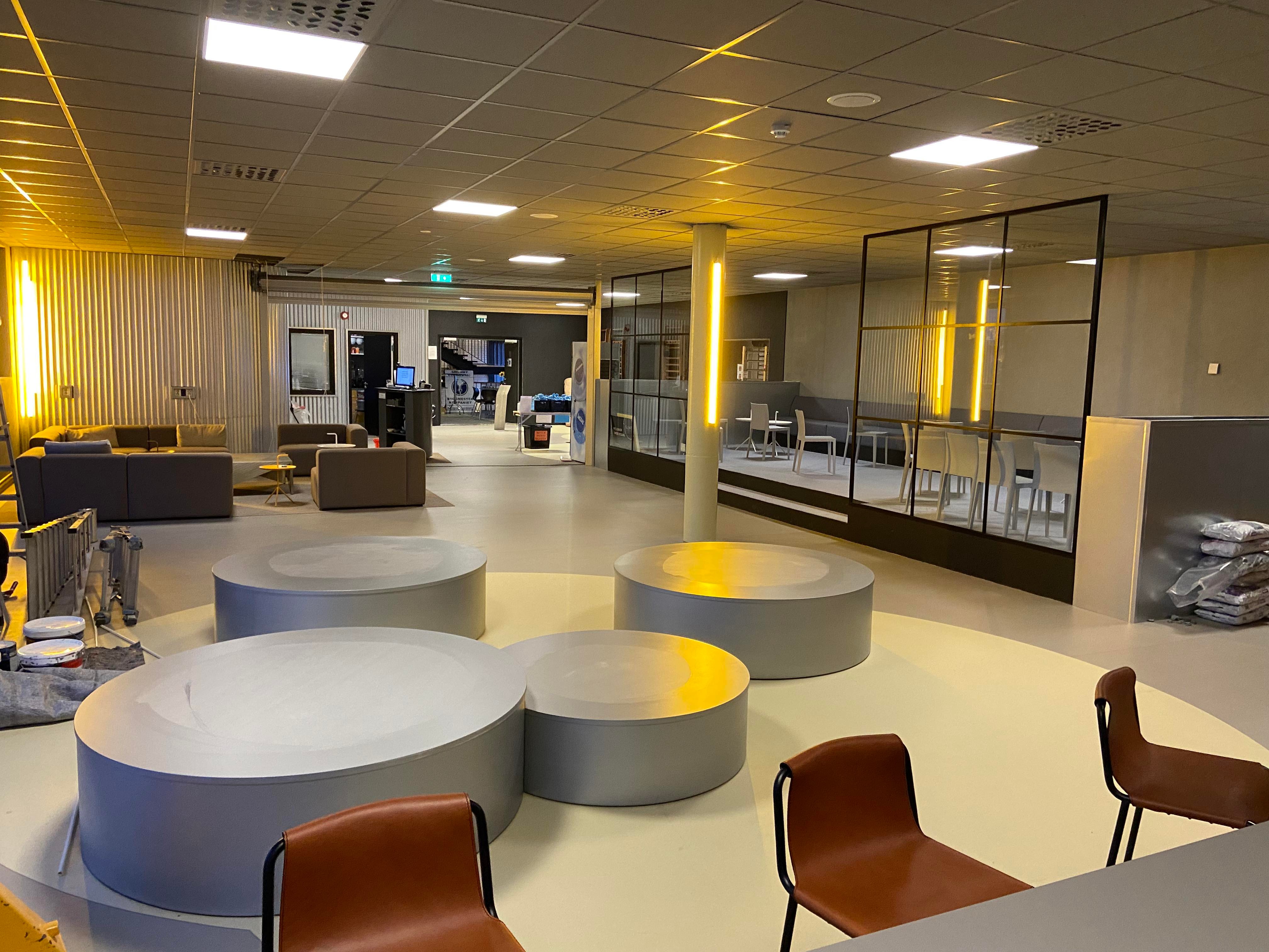 Arbeidet er ikke helt ferdigstilt enda, men her er noen bilder fra resepsjonen og kaféen: